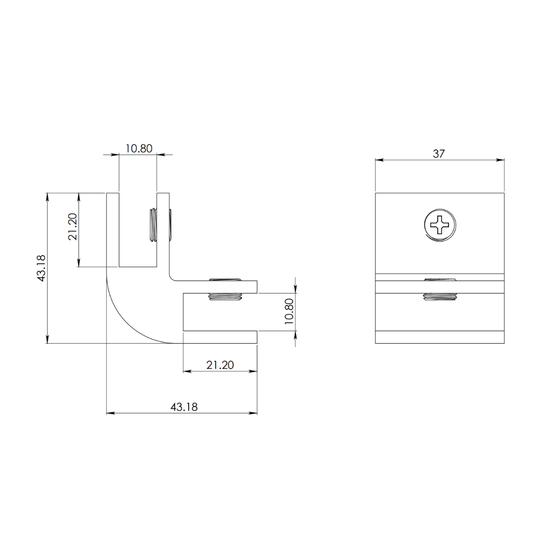 Conector “L”. *Incluye opresores. Espesor Para cristal de 10mm de espesor.